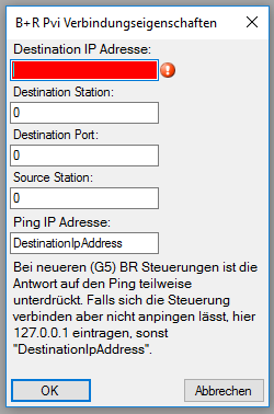 - Destination IP Adresse: IP Adresse der B+R Pvi-Steuerung