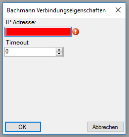 - IP Adresse: IP Adresse der Bachmann Steuerung