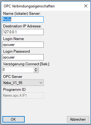 Für die Anbindung einer OPC-Steuerung müssen folgende Angaben gemacht werden: