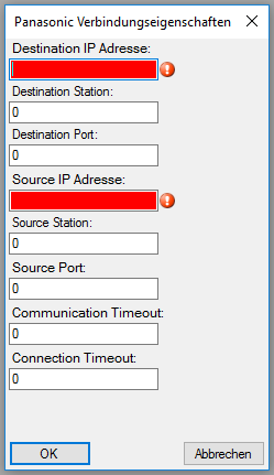 Für die Anbindung einer Panasonic-Steuerung müssen folgende Angaben gemacht werden: