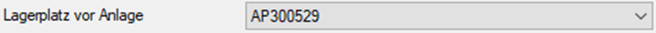 Hier wird der Bereich ausgewählt, an dem das Vormaterial welches die Maschine für den aktuellen Auftrag benötigt abgestellt werden soll. In der Regel ist der Abstellplatz nach der Anlage benannt, da er sich unmittelbar daneben befindet. Sollte es direkt an der Anlage nicht möglich sein Material zu deponieren, kann auch ein anderer Abstellplatz in der Nähe ausgewählt werden. Dies ist insofern relevant, als dass der Lagerplatz das Ziel des Transportauftrags ist. Es können sich mehrere Behältnisse (HU) in einem Lagerplatz vor der Maschine befinden. Die möglichen Lagerplätze werden bei der Einrichtung des MES-Systems fest voreingestellt.