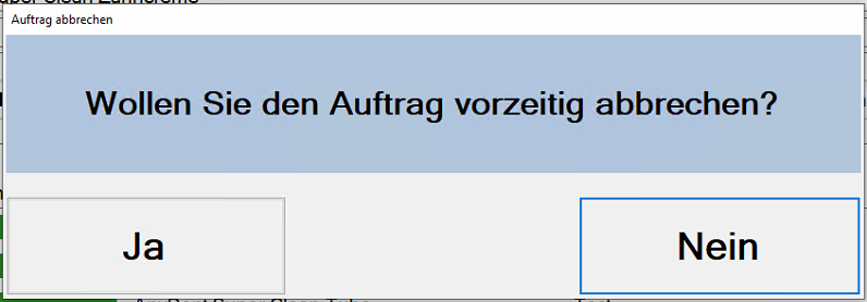The function Cancel order terminates the current order with immediate effect. This function should only be used if no parts have been produced for the order yet, or other options (Close order) do not work.